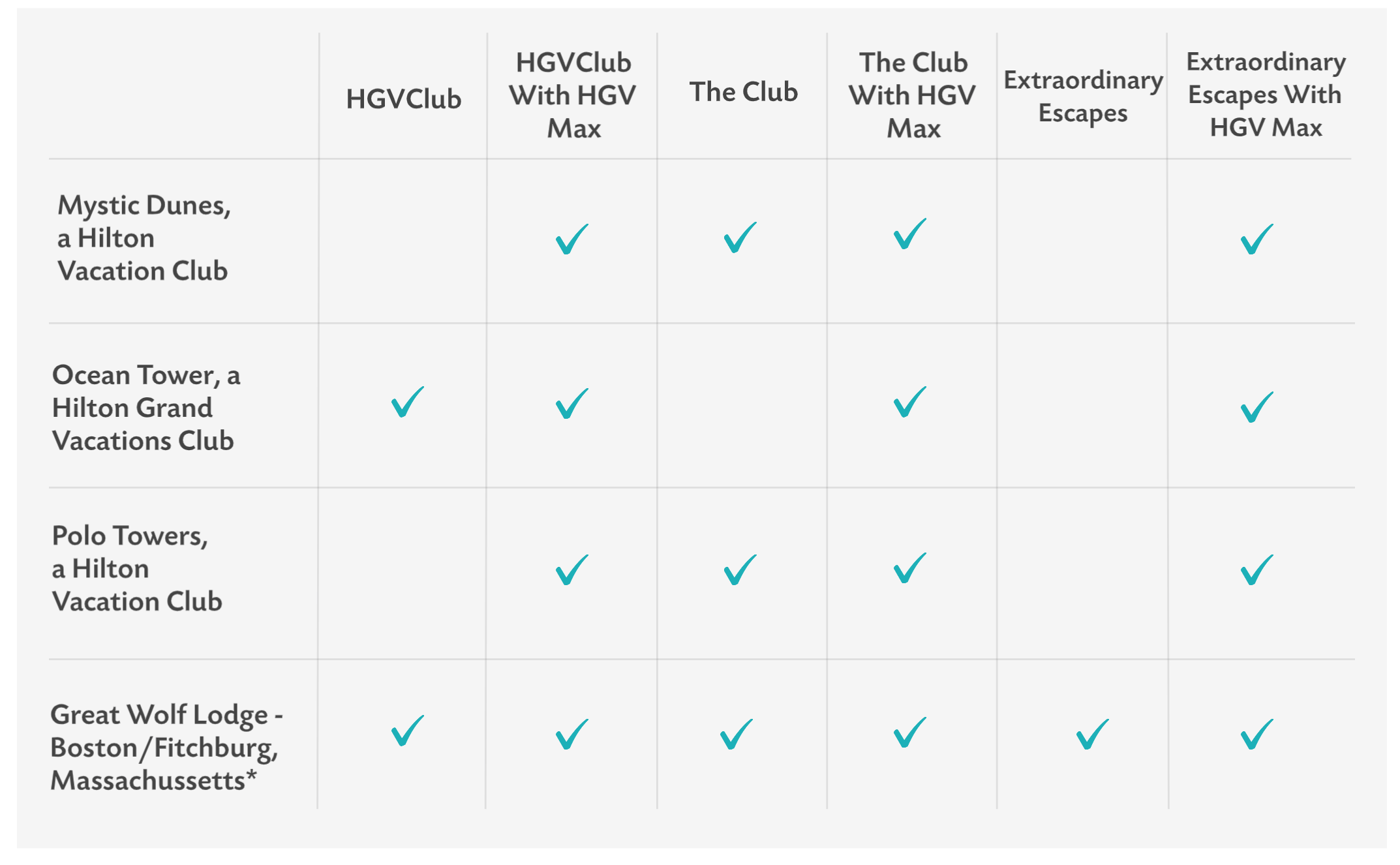*Great Wolf Lodge properties are available to all Members by paying an additional reservation fee (the reservation fee is waived for HGV Max Members).